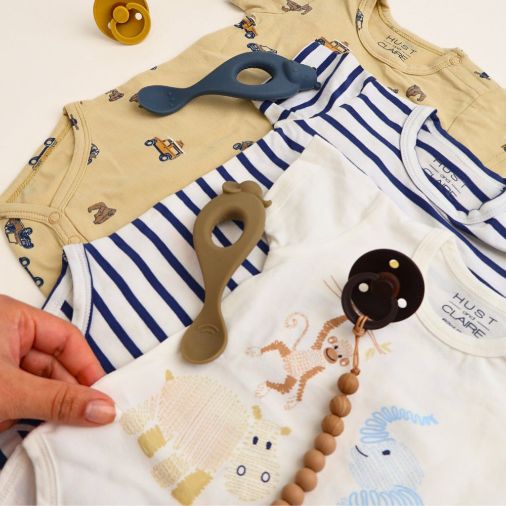 Med Hust & Claire får du inte bara funktionella och hållbara kläder till ditt barn, utan också plagg som är stiliga och färgglada. Dessa bodys är ett perfekt sätt att hålla din baby bekväm och trendig på samma gång. Satsa på en kombination av komfort, hållbarhet och stil med detta mångsidiga 3-pack som tillgodoser olika outfitbehov.
