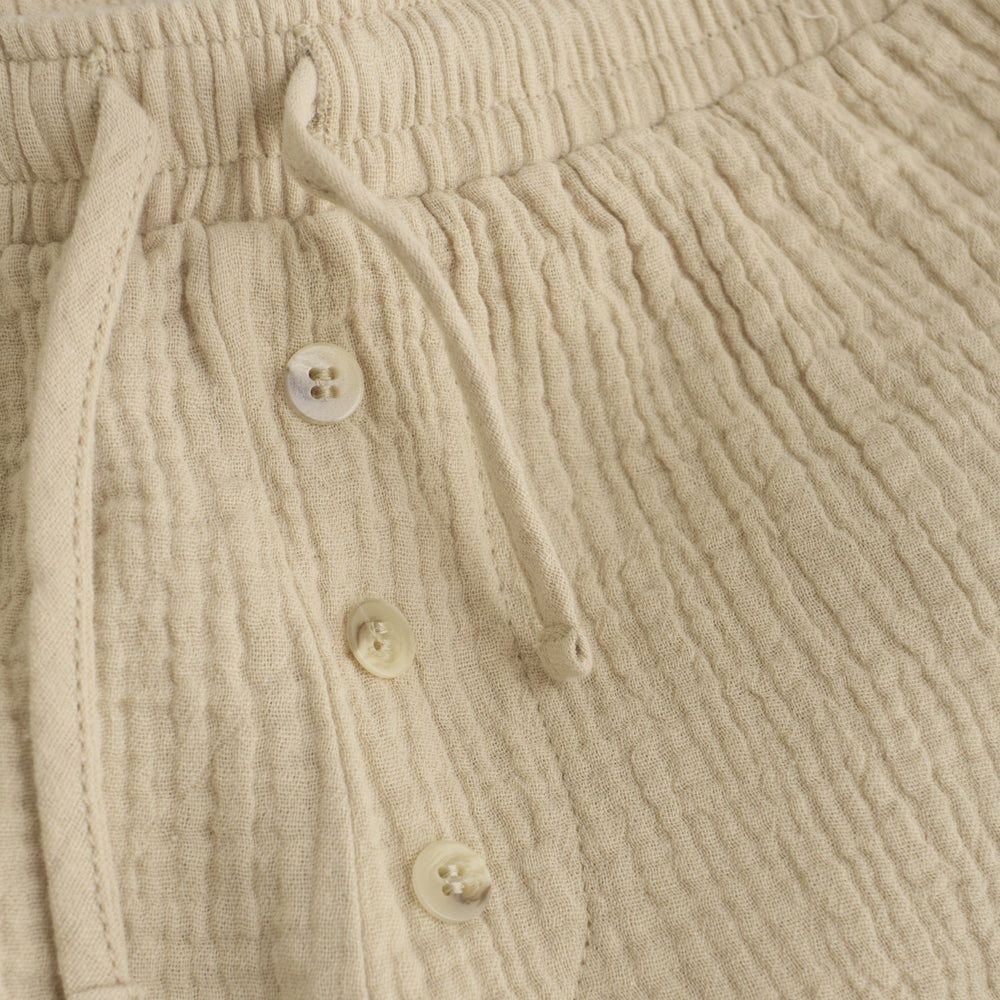 Upplev sommarens äventyr med Huttelihut Irish Cream Shorts i muslin! Dessa shorts kännetecknas av sin högkvalitativa muslinväv som garanterar utmärkt komfort och hållbarhet. Med en stilren design i krämig färg och diskreta mönster, är de perfekta för både lek och fest. Tillverkade för att passa bekvämt med en lätt och luftig känsla, är de ideala för ditt barns sommaraktiviteter. Överlägsen slitstyrka och enkla att sköta, vilket gör dem till ett smart val för varje barns garderob.