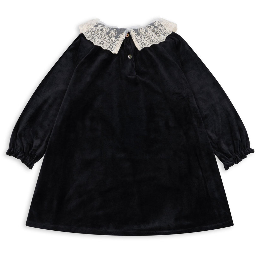 Unna din lilla en elegant stil med Konges Sløjd Black Venola Klänning. Denna klänning kombinerar komfort och stil med sitt mjuka sammetsmaterial och charmiga spetskrage. Den lätta, a-formade siluetten ger fri rörelsefrihet, perfekt för lekfulla barn. Tillverkad med 80 % GRS-certifierad polyester för hållbarhet och miljövänlighet. Idealisk för vardagsbruk eller festliga tillfällen. Material: 95 % återvunnen polyester, 5 % elastan Certifieringar: GLOBAL RECYCLED STANDARD BLANDAD MED MINST 80 %