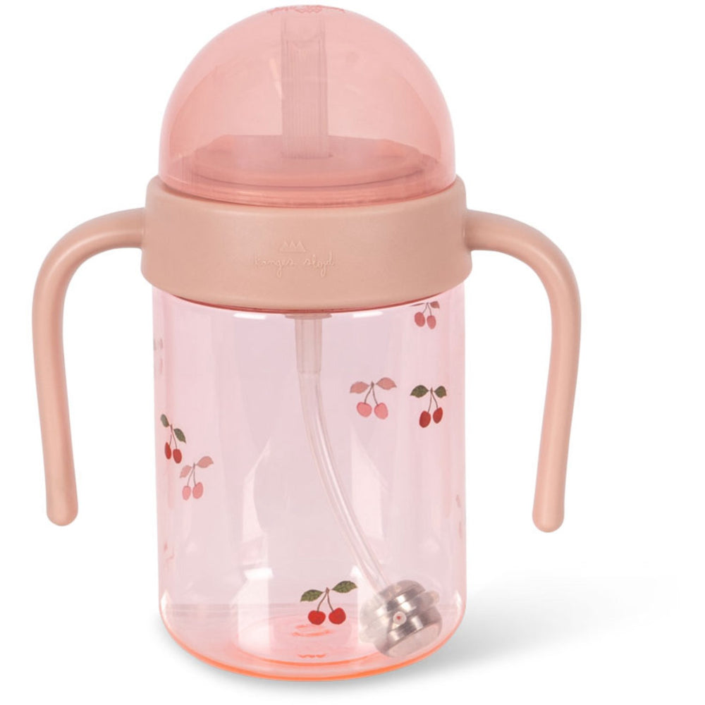 Upptäck Konges Sløjd Cherry Blush Flaska Med Handle, en iögonfallande och barnvänlig vattenflaska. Perfekt för små utforskare med sina lättgreppade handtag som är utformade för små händer. Flaskans sugrörsfunktion gör det enkelt för barnet att dricka självständigt, vilket främjar motorisk utveckling och självförtroende. Dessutom är den både hållbar och enkel att rengöra, vilket gör den till ett perfekt val för dagliga äventyr.