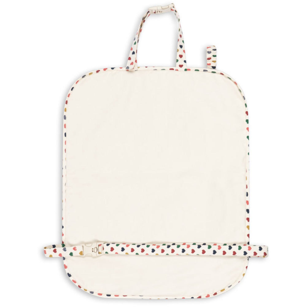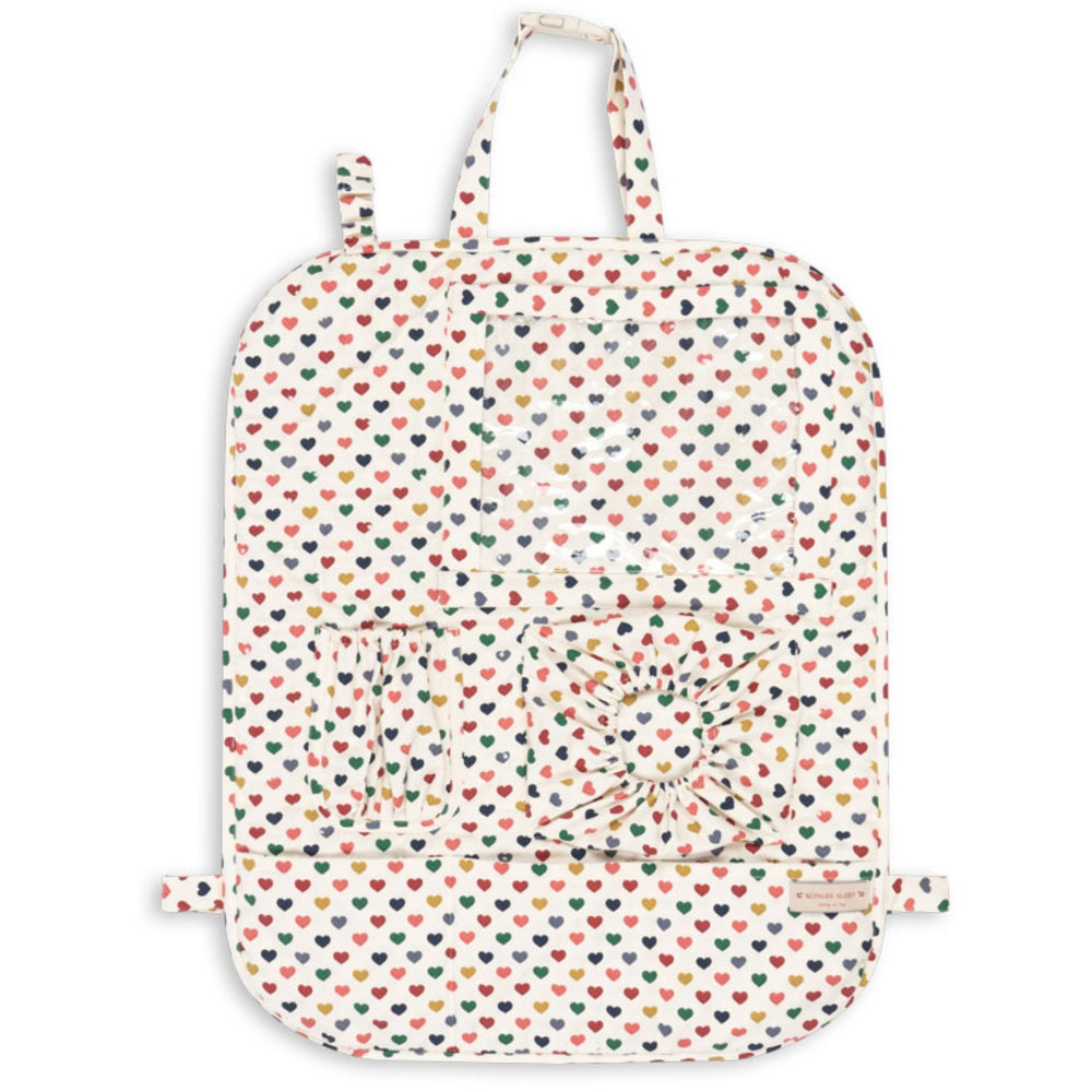 Upptäck Konges Sløjd Coeur Coloré Bil Organizer, en mångsidig och praktisk lösning för ordning i bilen när du reser med barn. Denna bärbara bilorganisatör är tillverkad i 100% ekologisk bomull, vilket ger en mjuk och behaglig känsla, och är fylld med 100% återvunnen polyester för extra hållbarhet. Med justerbara remmar som enkelt fästs på bilens nackstöd eller bilbarnstolen, är installationen både snabb och enkel.