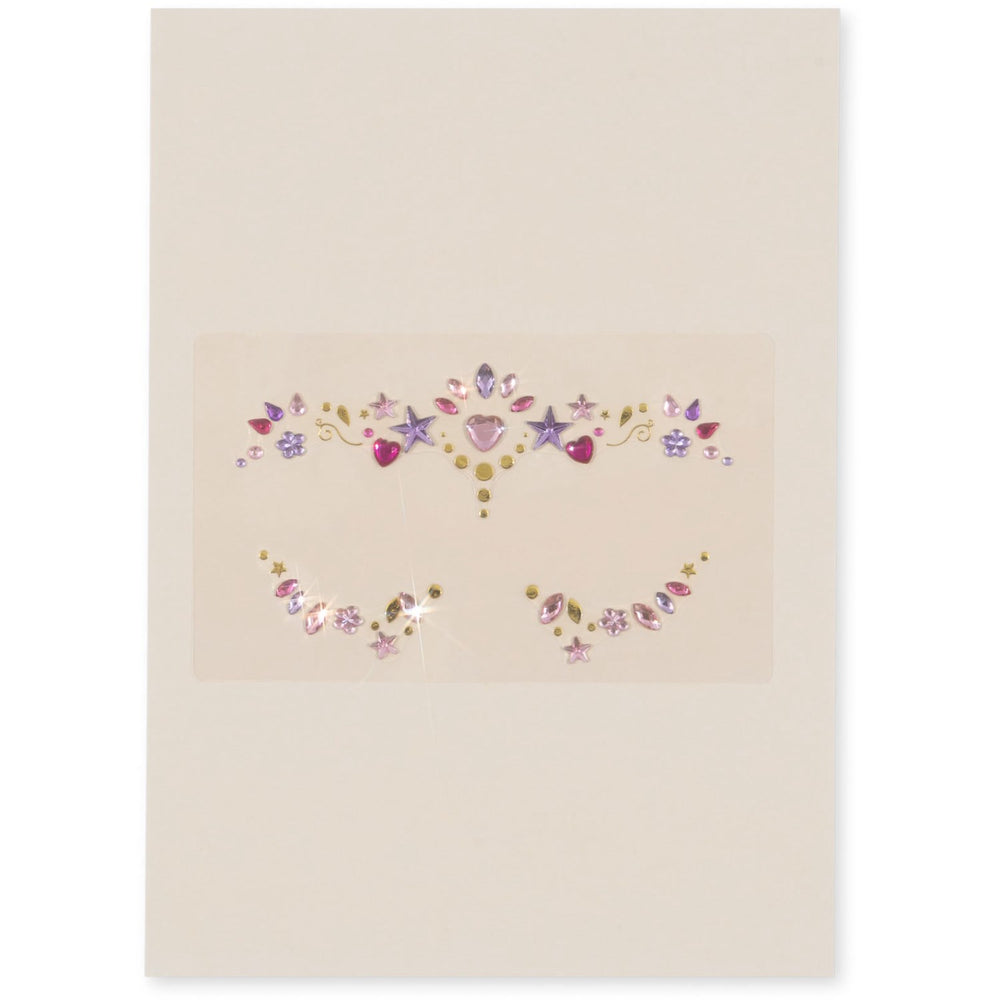 - Innehåll: 30+ tatueringar, 50+ nagelklistermärken, 1 mask med ädelstenar, 1 ark med ädelstenar