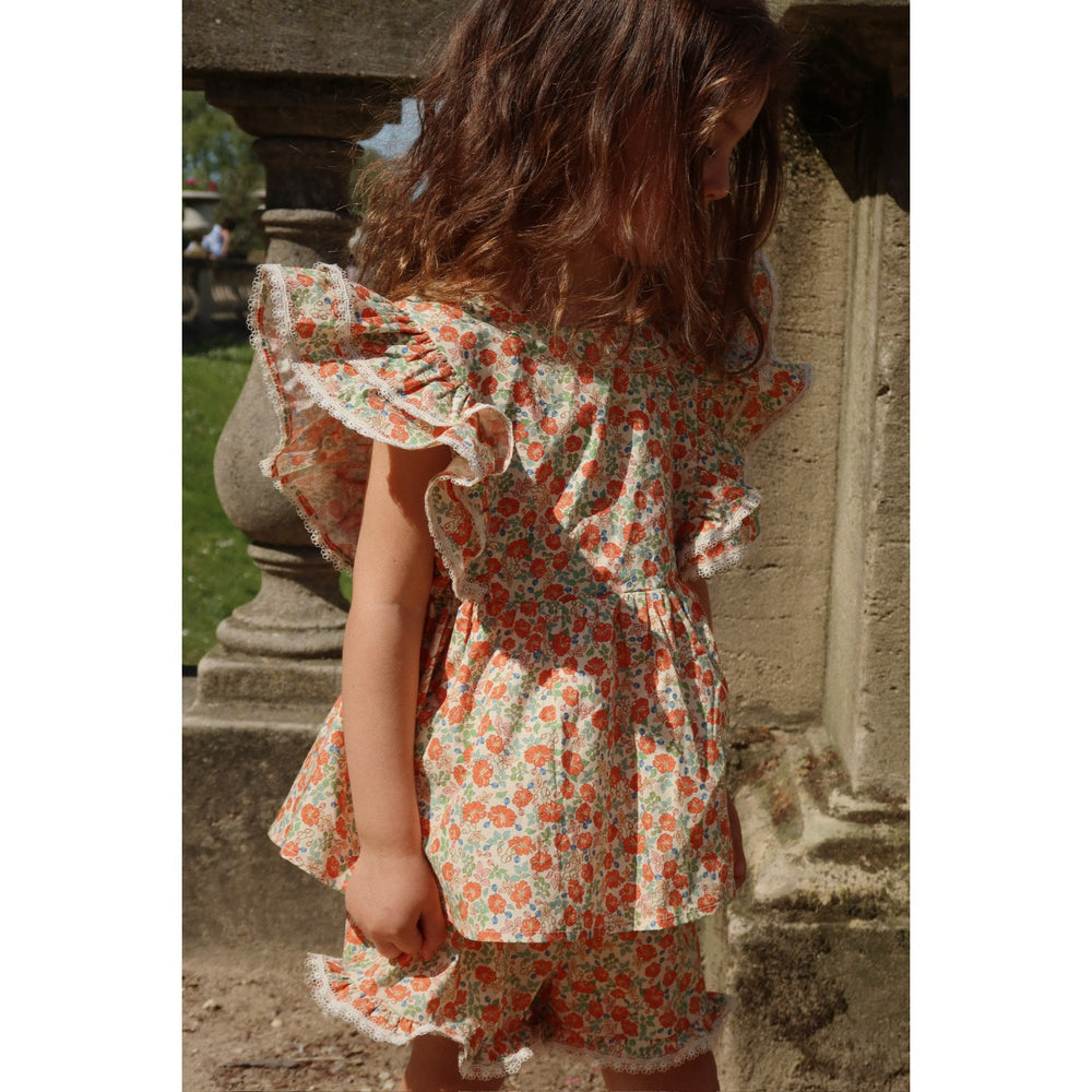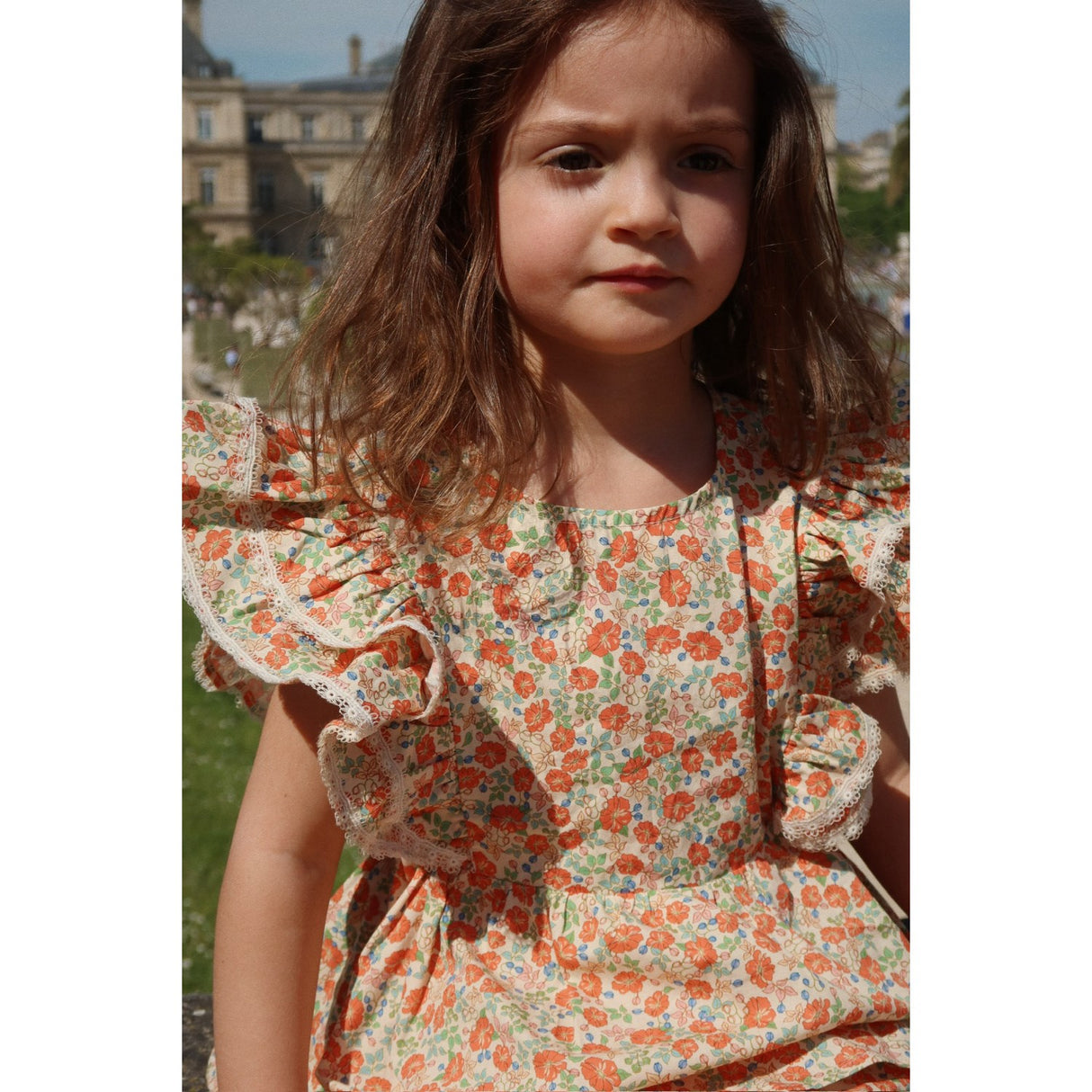 Klä ditt barn i Konges Sløjd Kaluka Verbena Toppen för en blend av skönhet och hållbarhet. Denna charmiga topp har dubbla volangärmar med delikat spetsdetalj, tillverkad av 100% ekologisk bomull. Med sin GOTS-certifiering garanteras miljövänlig och etisk produktion. Dess mjuka material och barnvänliga design erbjuder både komfort och stil, perfekt för vardagligt bruk eller speciella tillfällen.