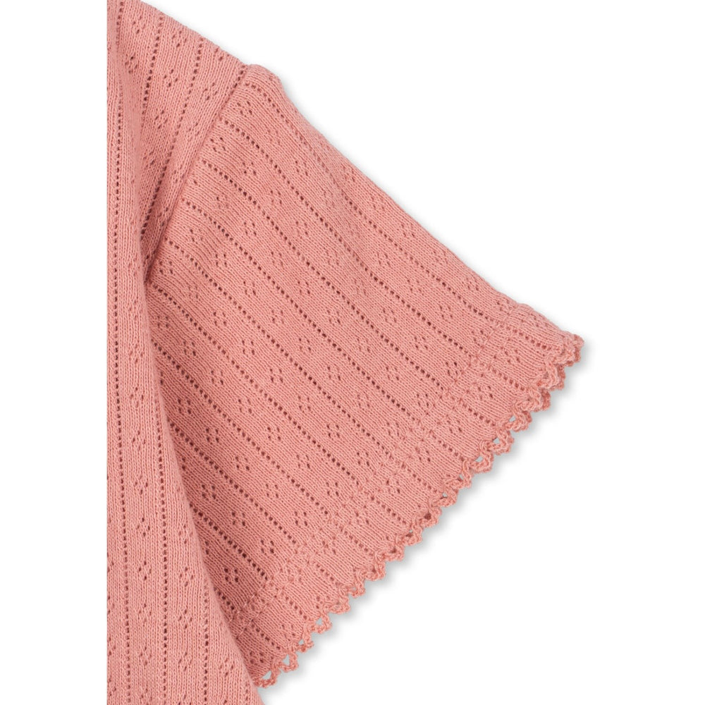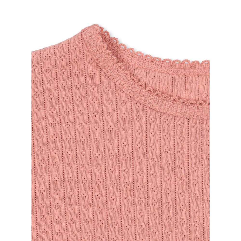 Upptäck bekvämligheten med Konges Sløjd Rosette Minnie Tee Gots, en mjuk basic t-shirt perfekt för barn. Tillverkad av 100% ekologisk bomull, denna topp är både skonsam mot känslig hud och hållbar. Det heltäckande pointelle-mönstret och den dekorativa picot-fållen lägger till en charmig touch. Idealisk för vardagligt bruk, den är enkel att sköta och behåller formen tvätt efter tvätt. Ge ditt barn en kombination av stil och komfort med denna underbara t-shirt!