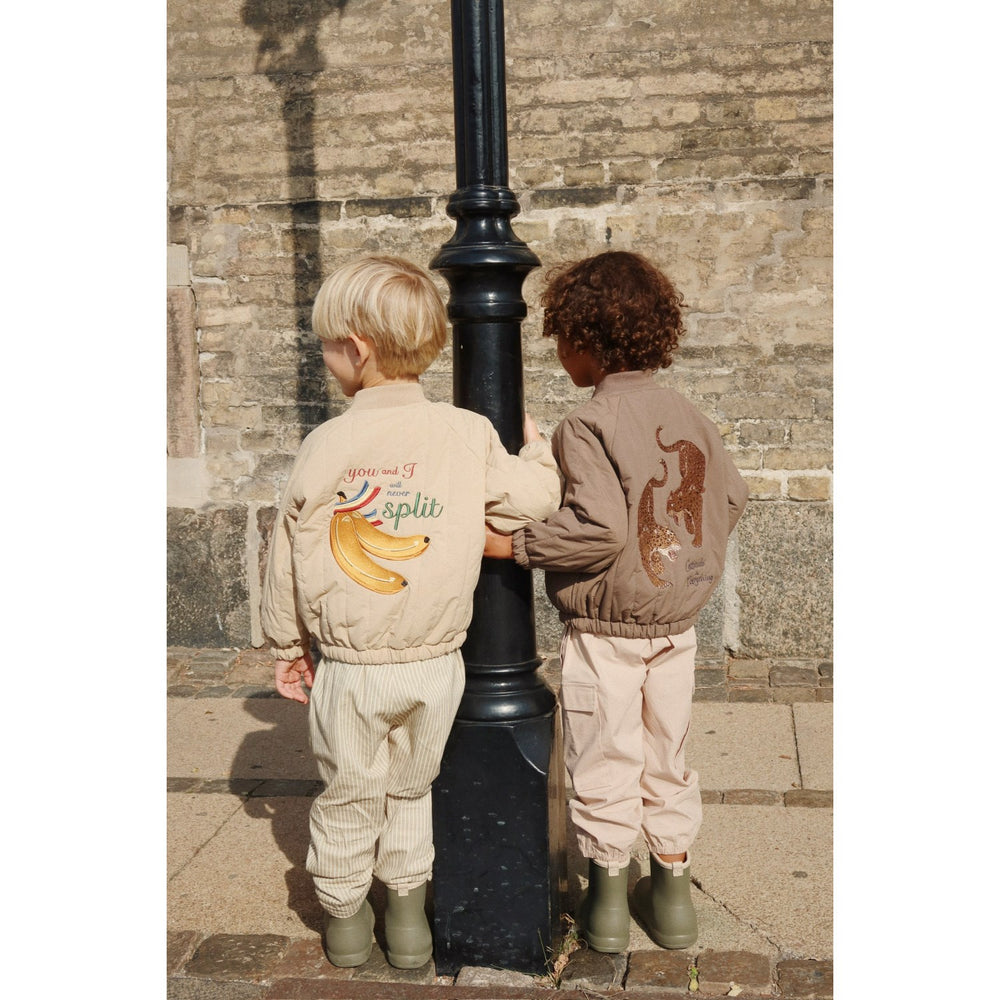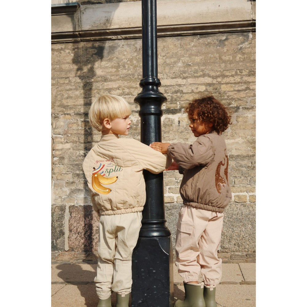 Upptäck den charmiga Juno bomberjackan från Konges Sløjd, perfekt för kyliga dagar. Tillverkad i lätt polyester med termoeffekt och värmande vaddering, erbjuder den utmärkt isolering samtidigt som den är andningsbar. Den stilrena designen kompletteras med en funktionell, fluorfri impregnering som skyddar mot vind och vatten. Idealisk för aktiva barn, tack vare dess bekväma passform och hållbara material. Juno bomberjackan är en säker investering för lekfulla dagar i alla väder.