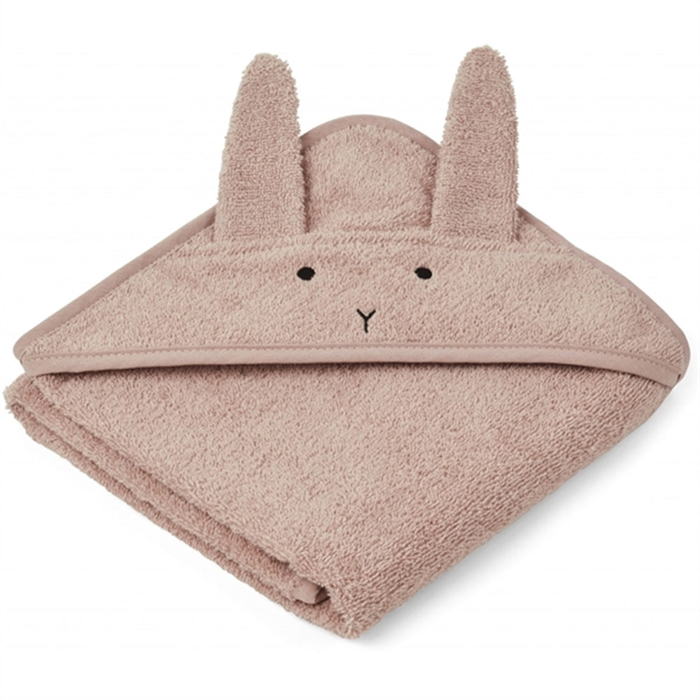 Superfin babyhandduk med huva från Liewood. Handduken är designad som en kanin i en fin nyans av rosa. Den är gjord av ekologisk bomull och är supermjuk. Perfekt för både flickor och pojkar. Ett måste för de små.