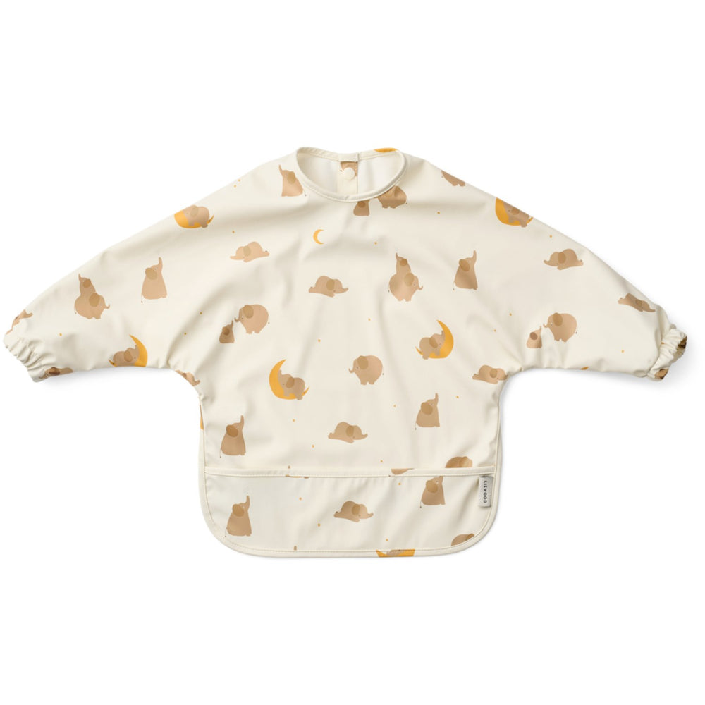 Upptäck LIEWOOD Elephant / Creme De La Creme Merle Printed Cape Haklapp – din perfekta partner i matningsäventyren för de minsta! Denna charmiga och praktiska haklapp är designad för att underlätta måltider för både spädbarn och småbarn som tar sina första kliv mot självständig ätning. Med smarta elastiska muddar som erbjuder en skön och säker passform, samt en praktisk framficka som effektivt fångar upp spill, minimeras röran vid varje måltid.