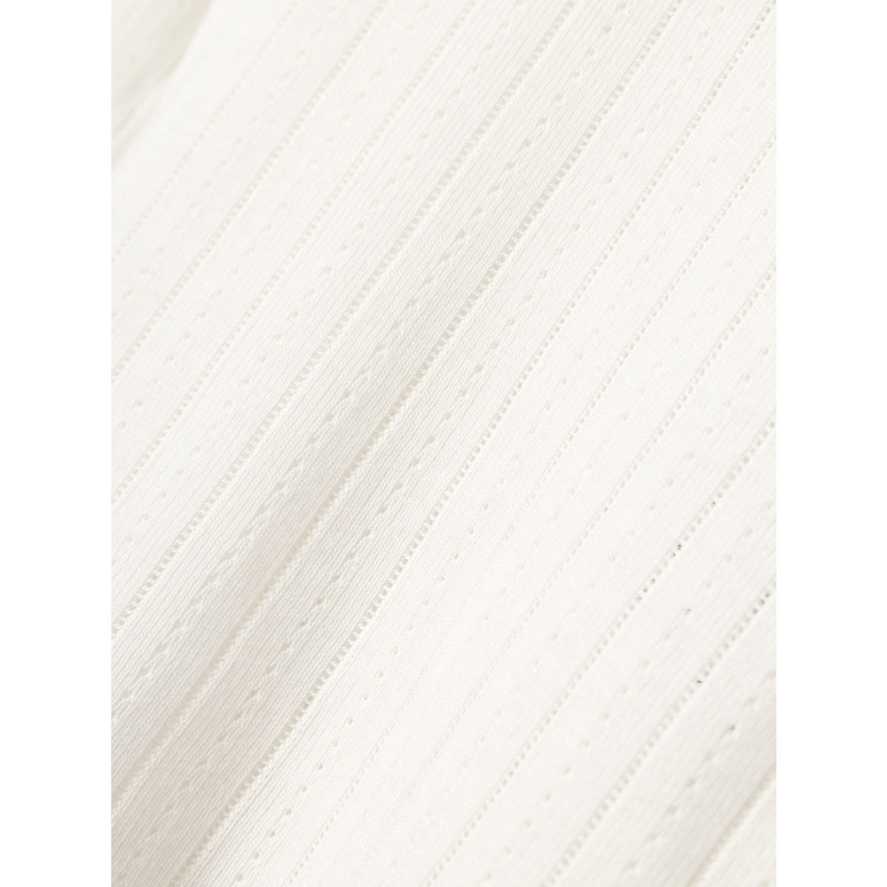 Blusens material är mjukt och skonsamt mot barnets känsliga hud, samtidigt som den slim fit passformen säkerställer en snygg silhuett utan att kompromissa med rörelsefriheten. Det unika needle drop-mönstret med dess tappade stygn ger ett charmigt och unikt utseende. Klädesplagget är även lätt att underhålla och håller sig snyggt genom flera tvättar. Med sina neutrala färger och subtila detaljer som krusiduller och etikett, kan denna blus enkelt integreras i vilken barn garderob som helst och passar utmärkt för alla typer av tillfällen – från lekparken till födelsedagskalas.