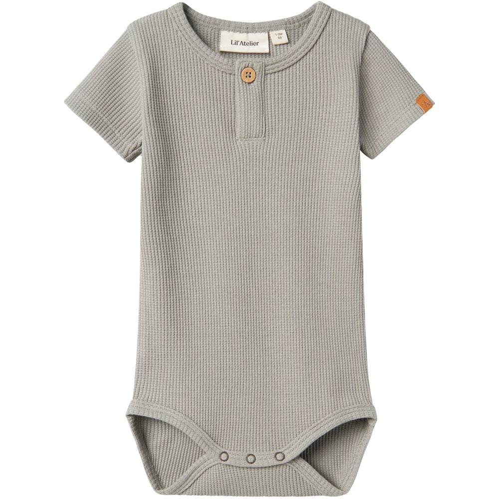 Upptäck Lil'Atelier Forest Fog Diem Body - en bodysuit som kombinerar stil och funktionalitet för de små. Tillverkad av jersey, ett material känt för sin lättvikt och stretchighet, erbjuder denna bodysuit en mjuk yta och insida som ger ditt barn maximal rörelsefrihet och komfort. Med en trendig farfarshals och korta ärmar, är den både chic och praktisk, och de enkla tryckknapparna underlättar påklädningen. Den neutrala färgsättningen och det diskreta mönstret gör den till en mångsidig del av barnets garderob. Lil'Atelier är känd för sin hållbara kvalitet och sitt moderna tilltal, vilket säkerställer att denna bodysuit inte bara ser bra ut utan också tål lek och tvätt. Idealisk för både fest och vardaglig lek.