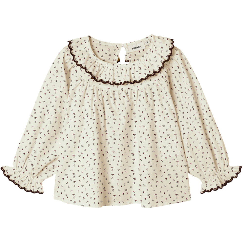 Dess lösa passform och charmiga detaljer som krusiduller, tillsammans med det återkommande mönstret över hela tyget, gör den inte bara bekväm utan även stilfull. Idealisk för såväl festliga tillfällen som för vardagligt bruk, denna blus är en mångsidig del av varje barns garderob. Den är lättskött och lovar att hålla sig vacker tvätt efter tvätt. Ge ditt barn möjligheten att utforska sin värld med stil och komfort med vår Lil'Atelier blus.