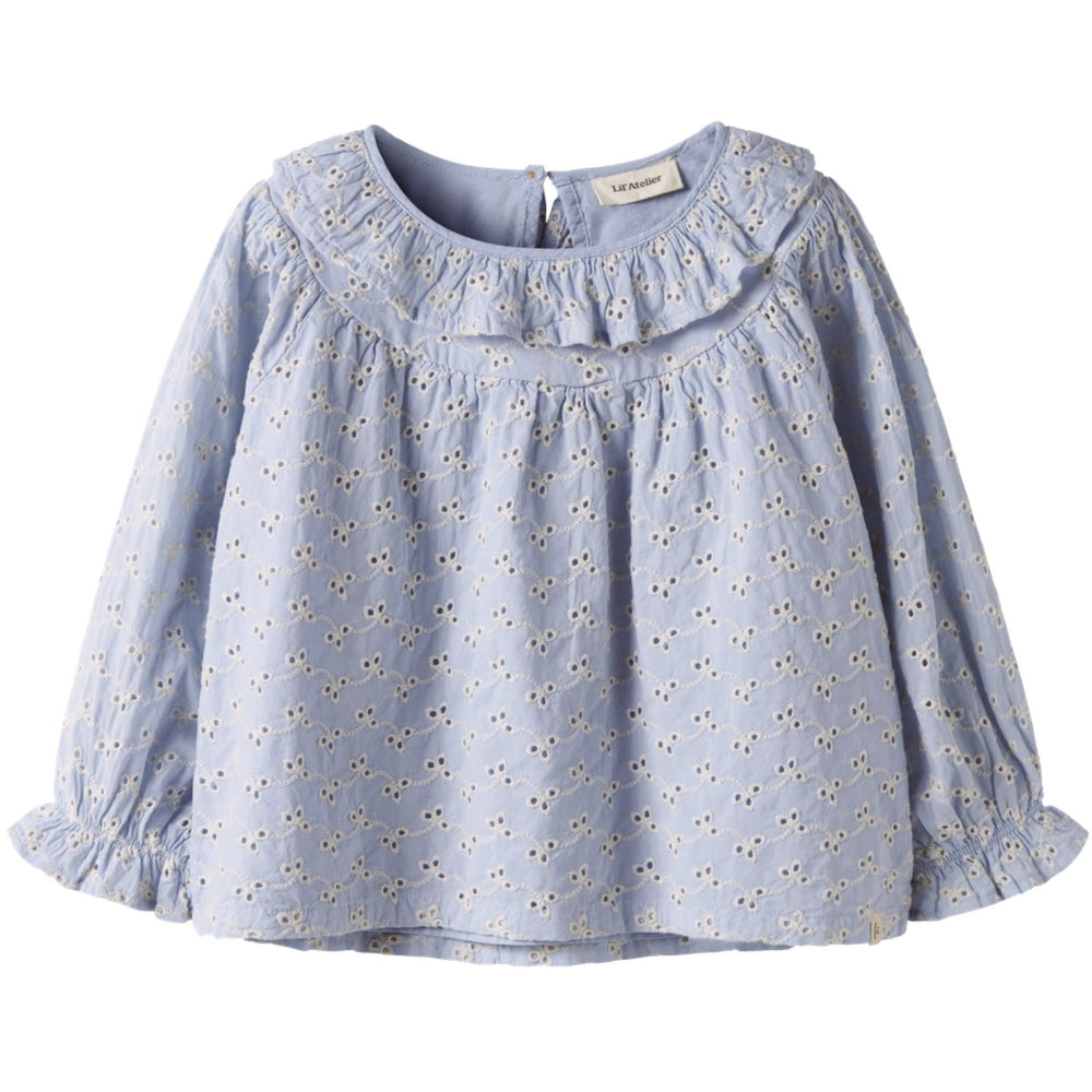 Uppdatera din lilla äventyrares garderob med Lil'Atelier Zen Blue Nmftessie Ls Loose Skjorta. Denna charmiga skjorta är tillverkad med en mjuk och hudvänlig kvalitet, perfekt för känslig barnhud. Dess broderie anglaise med sina eleganta utskärningar ger ett fint och stiligt intryck, vilket gör att den passar både till vardags och fest.
