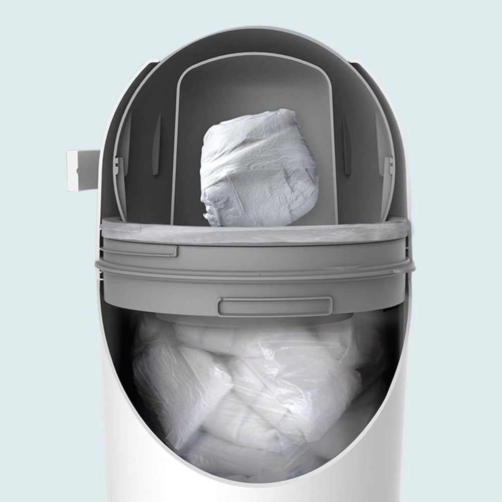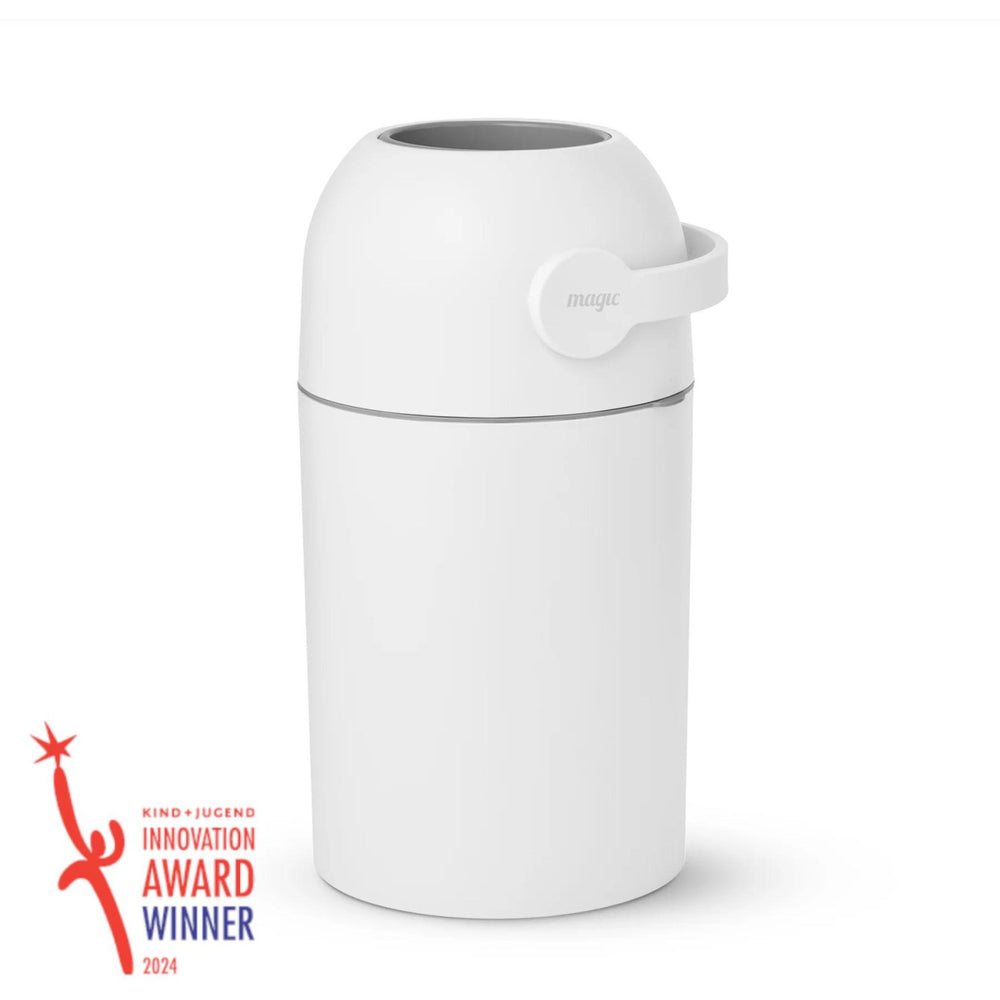 Upptäck MAGIC WHITE MAJESTIC, en revolutionerande blöjhink som håller barnrummet fräscht och doftfritt. Med sin 100 % luktfria teknologi och användning av vanliga plastpåsar eliminerar den behovet av dyra specialkassetter. Dess säkra och enkla användning gör den till ett måste i varje hem.