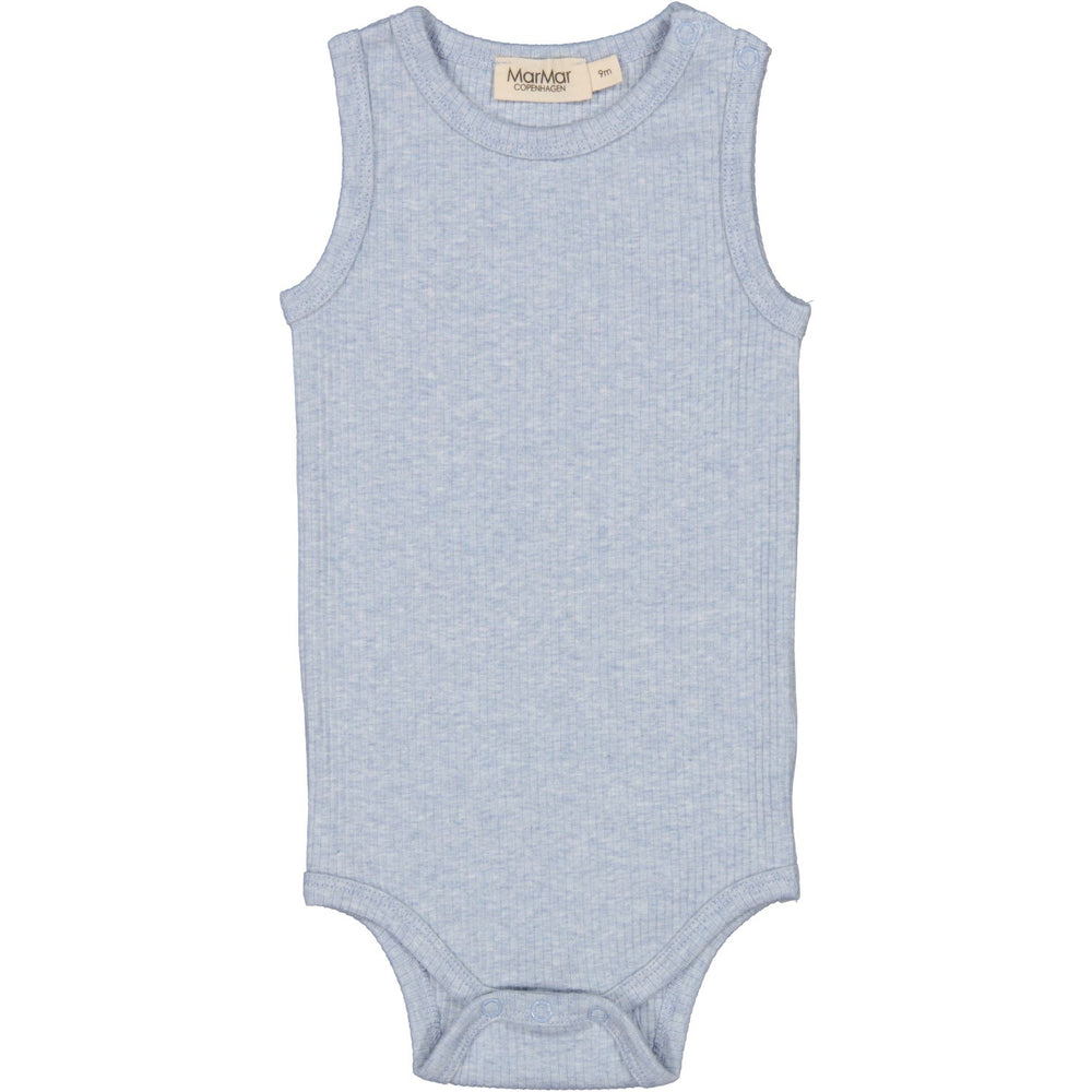 Denna ärmlösa MarMar modal melange kroppsstrumpa är perfekt för sommardagar, lekkvällar eller bara sänggåendet. Snäppdesignen mellan benen garanterar ett snabbt och enkelt blöjbyte, medan det mjuka, melerade ribbade tyget med en touch av elastan garanterar komfort hela dagen. Denna kroppsstrumpa behåller både sin form och färg även efter många tvättar och är Oeko-tex-certifierad® fri från skadliga kemikalier. En riktig favorit sedan 2008, uppfräschad med nya färger varje säsong för att matcha varje liten trendsättares garderob.