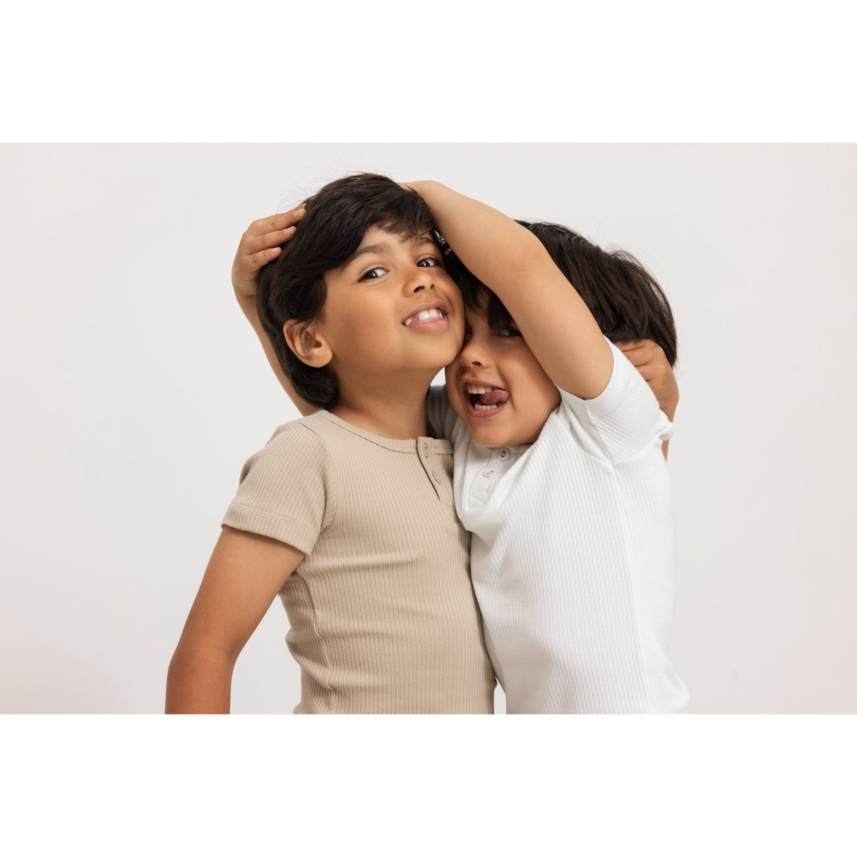 Låt de små uppleva komfort och stil med MarMar Modal Mint Chalk T-Shirt. Den här kortärmade t-shirten är designad med en praktisk knappslå och är gjord av en mjuk, stretchig ribbstickad tröja med elastan. T-shirten är perfekt för lek och vardagsbruk och garanterar komfort hela dagen med sitt andningsbara material. Behåller både form och färg, även efter många tvättar. Dessutom är den tillverkad utan skadliga kemikalier, certifierad Oeko-tex®. En riktig garderobsfavorit, uppdaterad i nya färger varje säsong sedan 2008!