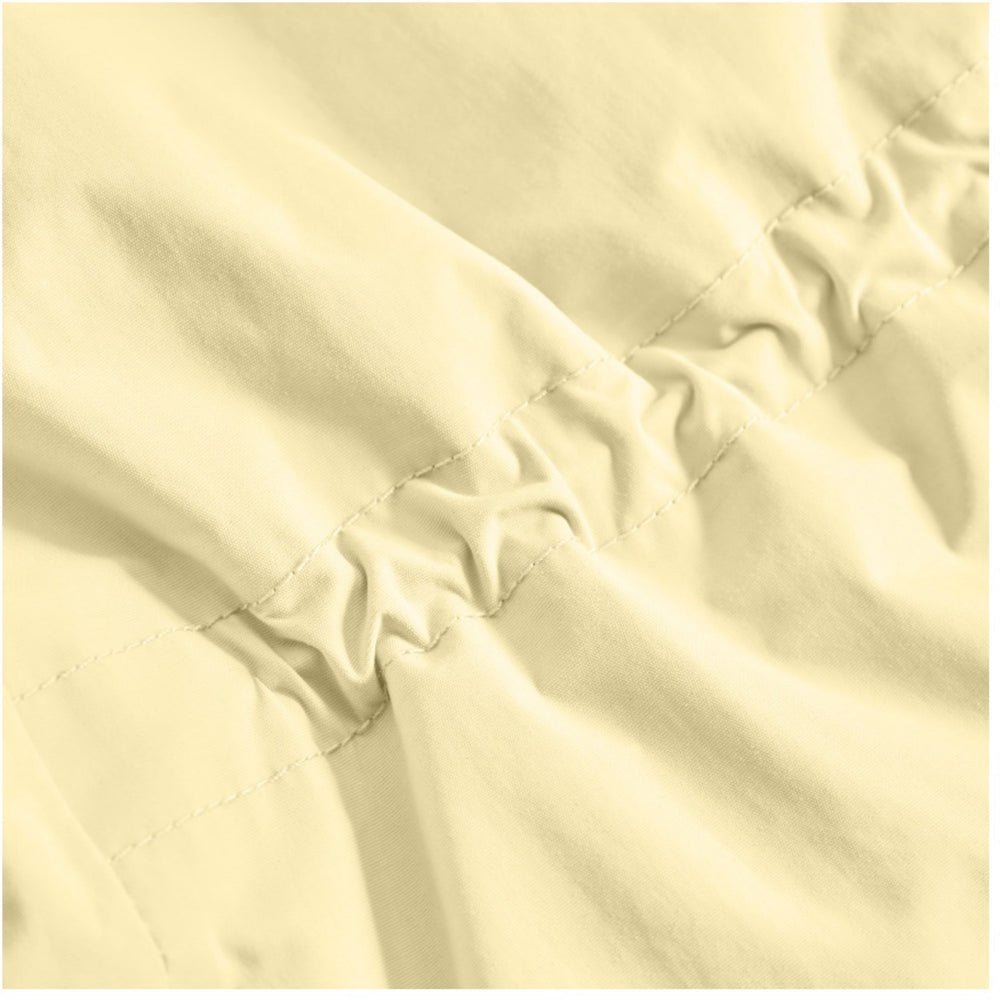 Designen kombinerar en särpräglad spetsig huva med en överdimensionerad framficka och en praktisk dragkedja på vänster framsida. Justerbar midja och en avtagbar huva med tryckknappar gör jackan mångsidig och lätt att anpassa. För de minsta barnen upp till 18 månader erbjuder jackan en ribbad krage, medan större storlekar har en traditionell krage.