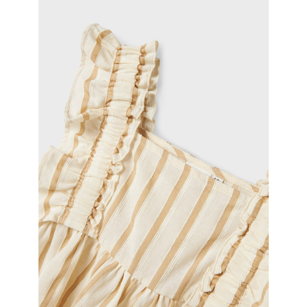 Förgyll ditt barns garderob med Name It Bleached Sand Cloud Dancer Herdon Cap Topp, en ljus och luftig topp som är perfekt för varma sommardagar och ljusa kvällar. Tillverkad av vävt tyg med ett iögonfallande korsmönster och en lätt strukturerad yta, erbjuder denna topp en ren och klassisk look som passar alla tillfällen. Med sin fyrkantiga hals och söta capärmar kombinerar denna topp komfort med stil. Toppens hela yta är dekorerad med ett charmigt upprepat mönster som säkerställer att ditt barn sticker ut i mängden. Perfekt för lek eller speciella familjesammanhang, dess normala passform ger utmärkt rörelsefrihet samtidigt som den sitter bekvämt genom dagens aktiviteter.