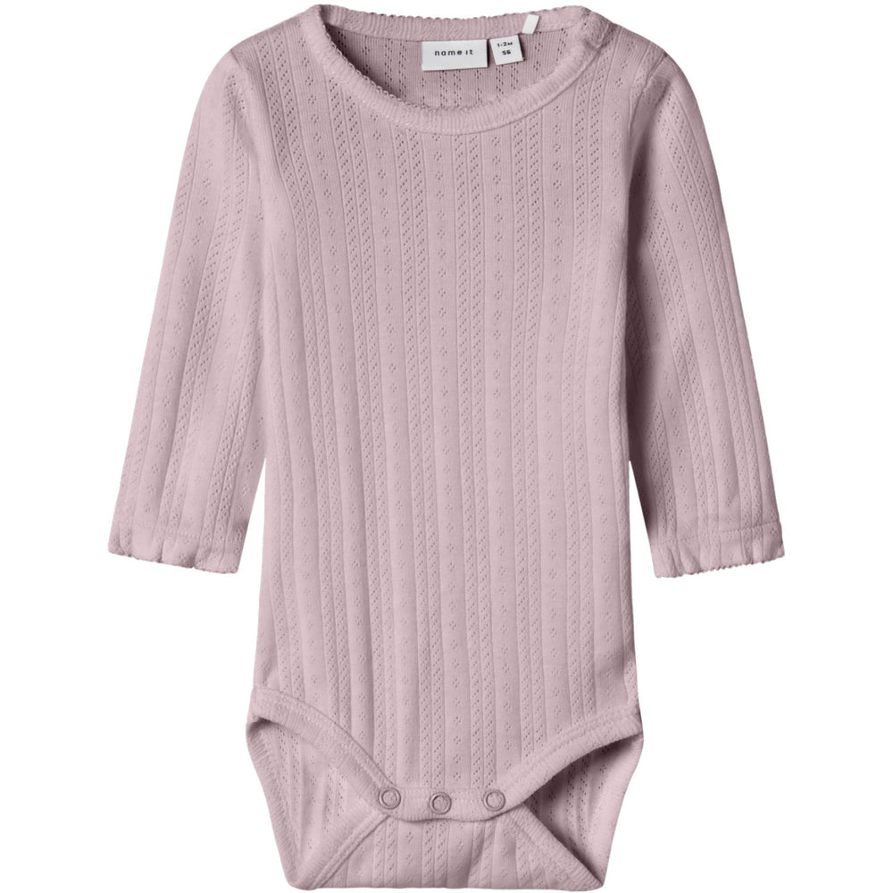 Uppdatera din lilla ängels garderob med Name It Burnished Lilac Nbfkisa Ls Body, ett perfekt val för både stil och komfort. Denna charmiga bodysuit är tillverkad med omsorg i en mjuk, ribbstickad design med ett sinnrikt vertikalt randmönster som erbjuder en tidlös estetik samt utmärkt elasticitet. Denna ljuvliga lilafärgade body har långa ärmar avslutade med elastiska manschetter och en praktisk knäppning med tryckknappar för enkel på- och avklädning. Dess runda hals ger en klassisk touch och övertygelsen om att din lille ständigt är bekväm, både under lek och vila. Tänk på säkerhet: förvara produkten långt från öppen eld.