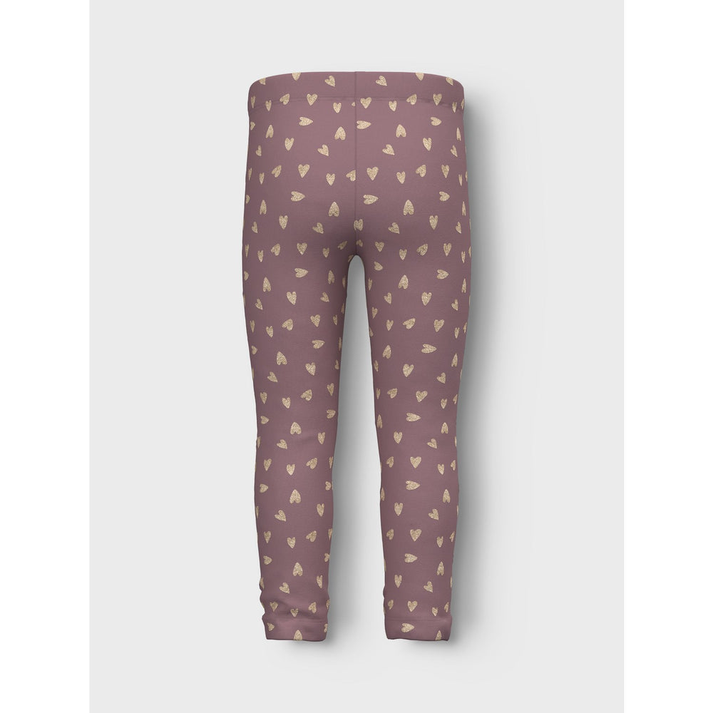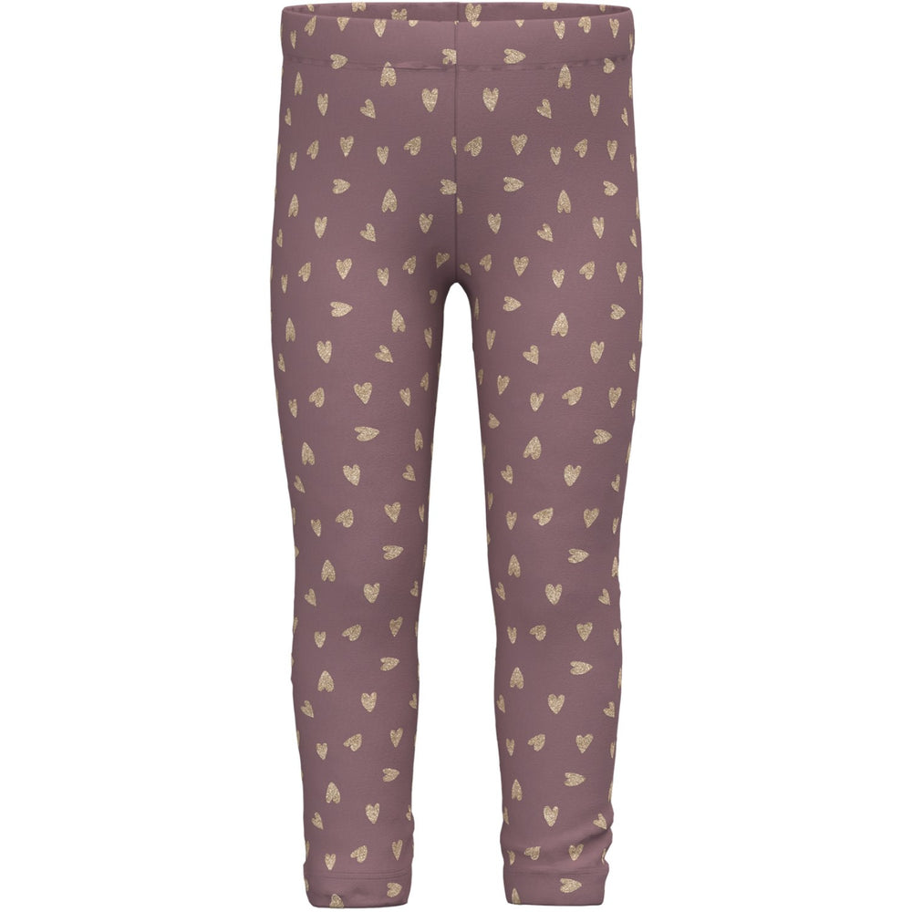 Name It Grape Shake W. Glitter Hearts Tavina Sweat Fleece Leggings Noos
