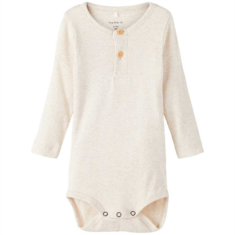 Superfin kroppsstrumpa för de små. Den här i den här vackraste benvita nyansen. Dessutom har bodyn ett elegant ribbat mönster. Bodyn har långa ärmar och tryckknappar nedtill.
