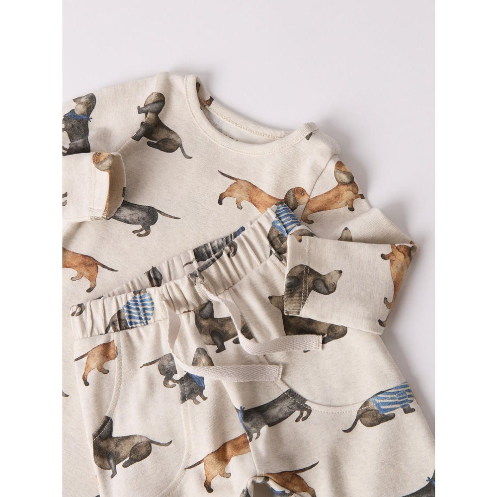 Byxorna är utrustade med icke-funktionella fickor som bidrar till en slät silhuett och en strömlinjeformad look. Det upprepade mönstret över hela ytan tillför en lekfull touch som kommer tilltala både barn och föräldrar. Tack vare den ofixerade sladden kan passformen enkelt justeras efter barnets behov.