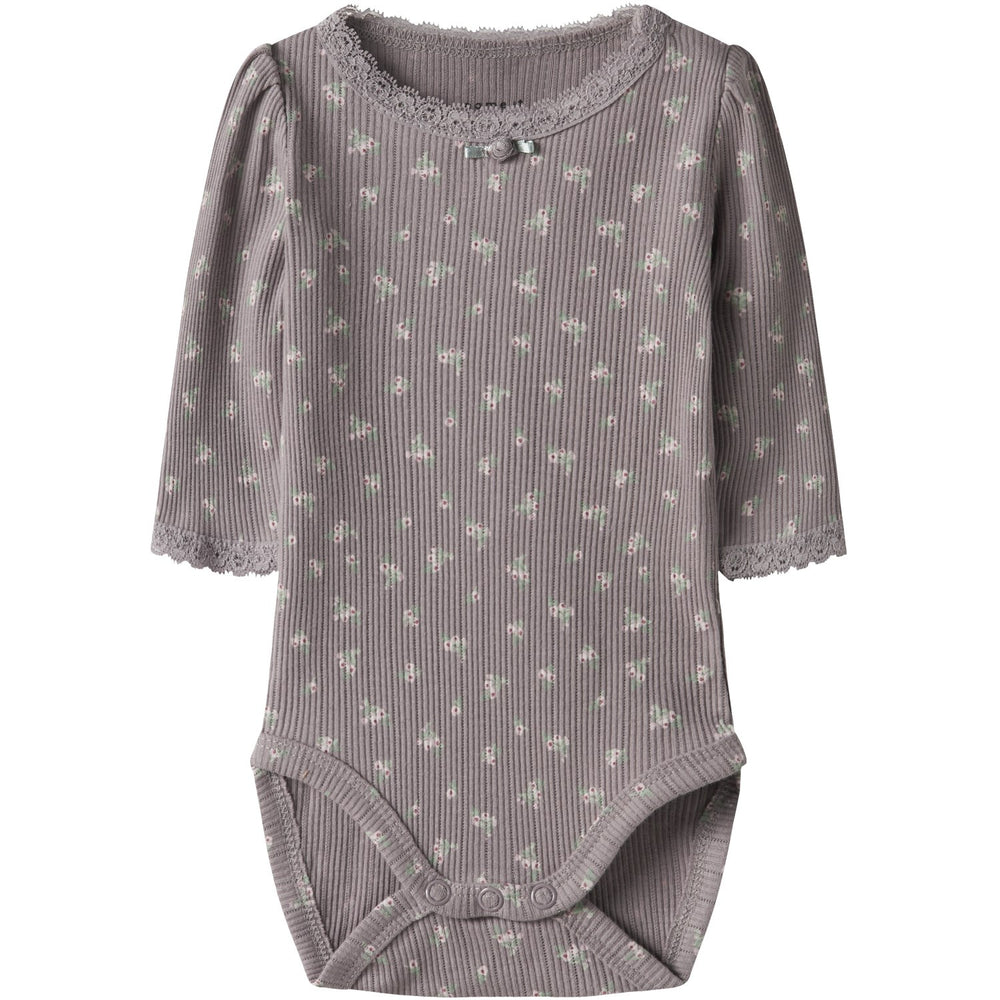 Uppdatera din lilla ängels garderob med vår Name It Purple Dove Hoise Bodysuit, som kombinerar komfort med charmig design. Tillverkad i mjukt ribbstickat material, denna bodysuit att känns skön mot huden och dess vertikalt randiga mönster ger ett stilrent och tidlöst intryck. Den ljuva lila färgen och de subtila spetsdetaljerna förhöjer estetiken ytterligare, medan tryckknapparna vid axlarna och i grenen förenklar på- och avklädnaden. Långa ärmar och rund hals bidrar till en behaglig passform, perfekt för lek där hemma eller dagar på förskolan. Särskilda tryck över hela gör varje plagg unikt. Notera att den bör förvaras borta från eld för optimal säkerhet. Idealisk för att hålla ditt barn både stilig och bekväm!