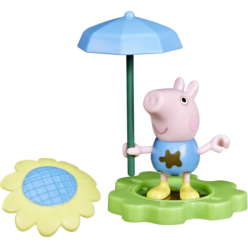 Låt ditt barn uppleva lekfulla äventyr med Greta Gris och hennes Mudderpøl George från serien Mud Puddle Friends! Denna charmiga 7,5 cm höga figur ger inte bara glädje utan är också utformad för att passa perfekt i små händer. Den medföljande pinnen förvandlas kvickt från ett praktiskt paraply till en underbar solros beroende på väder, vilket inbjuder till kreativ och situationsanpassad lek.