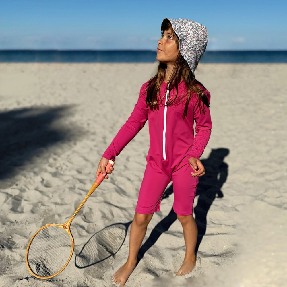 För lysande soliga dagar är Petit Crabe Mulberry Combi Sunsuit ett utmärkt val för ditt barn. Denna charmiga UV-soldräkt är tillverkad av Oeko-Tex-certifierat material vilket säkerställer att den är både säker och skonsam mot barnets hud. Utformad med långa ärmar och korta ben för optimalt solskydd (UPF 50+), är dräkten både funktionell och stilfull med sitt ljuvliga krabbbroderi. Den bekväma passformen och den andningsbara, snabbtorkande tyget gör den idealisk för lek och rörelse både i och utanför vatten. Den praktiska YKK-dragkedjan förenklar på- och avklädningen och bidrar till dräktens hållbarhet. Kombinera med en matchande solhatt för att ytterligare skydda ditt barn under soliga äventyr.