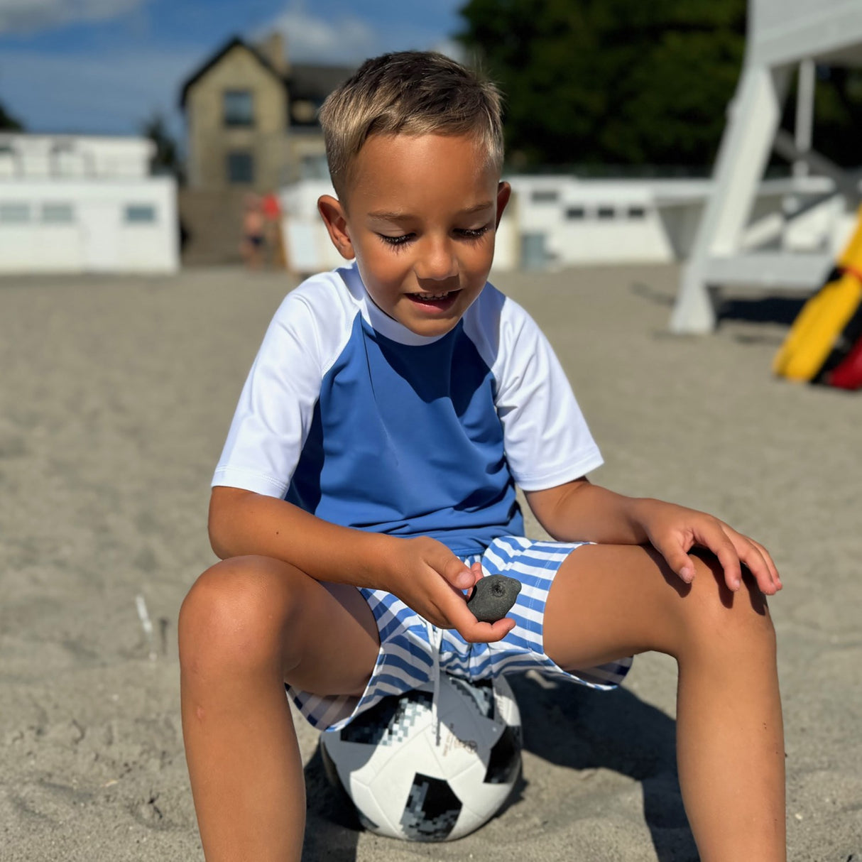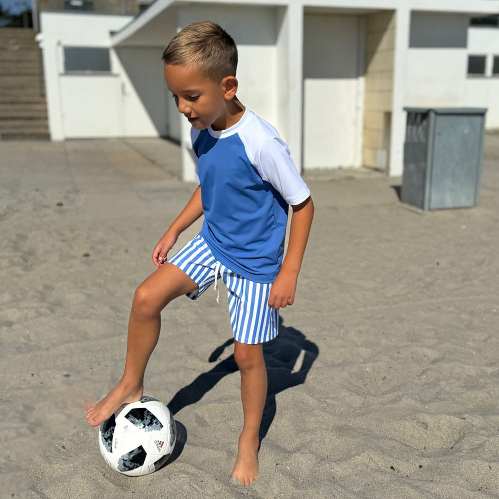 Upplev sommarkul med stil i Petit Crabe Vertical Stripes Alex Badeshorts! Dessa charmiga badbyxor har ett lekfullt randigt mönster och är tillverkade av Oeko-Tex-certifierat tyg som är både andningsbart och snabbtorkande, vilket garanterar optimal komfort och hållbarhet. Med en praktisk resår och dragsko får du alltid en perfekt passform. Perfekta för små äventyrare, dessa shorts är utrustade med solskyddsfaktor 50+, vilket skyddar mot solens strålar under dagarna vid poolen eller på stranden.