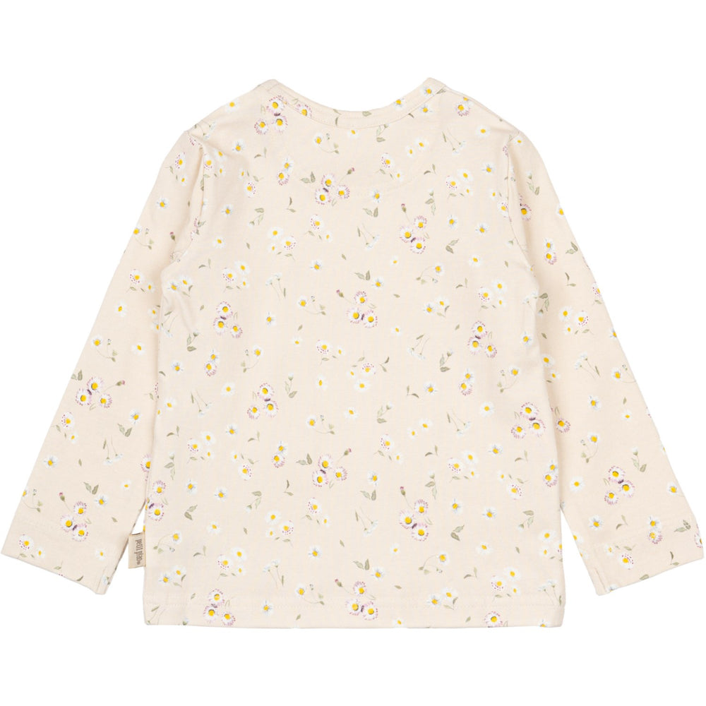 Upptäck Petit Piao Bellis blus med delikata akvarelltryck, inspirerade av den danska naturen. Denna långärmade T-shirt är tillverkad av mjuk och stretchig ekologisk bomull, vilket garanterar ultimat komfort och rörelsefrihet för ditt barn. Med tryckknappar på axelsömmen i storlekarna 74-92 för enkel påklädning. Den här blusen är både slitstark och lättskött och passar perfekt till vardags och fest.
