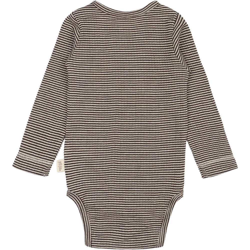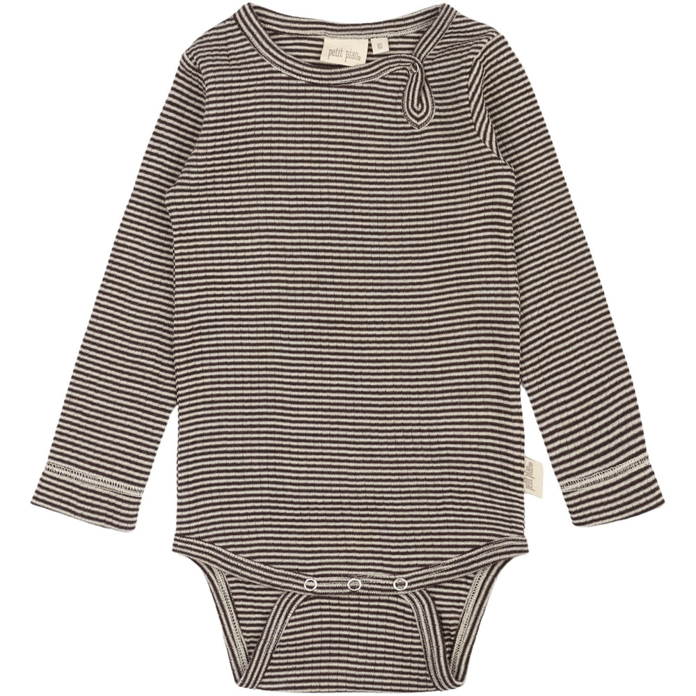 Petit Piao Coffee Bean/Dark Off White PPDante Body L/S Merino Ull Striped
