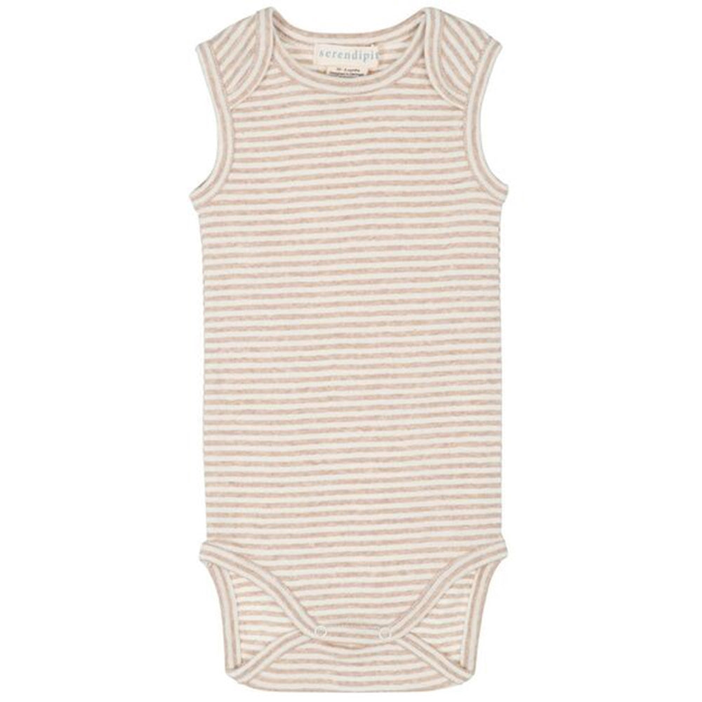 Superfin ärmlös bodystocking för de små. Den här i fin sandfärg och vit. Kroppen har en amerikansk halsringning, så den är lätt att ta på och av. De har en supermjuk kvalitet och bra passform.