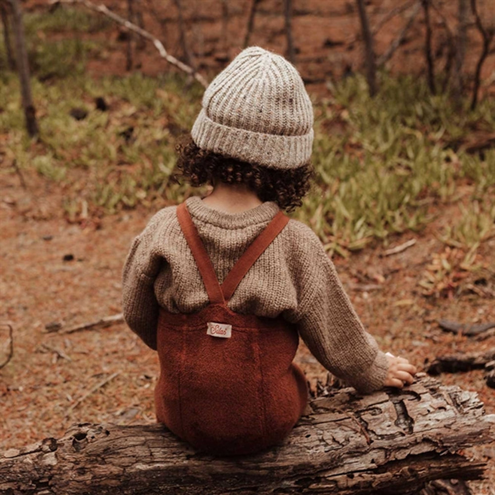 Låt ditt barn uppleva värme och stil med Silly Silas Teddy Warmy Footed Tights i färgen Cinnamon. Dessa strumpbyxor är framställda i en mjuk teddytextur, perfekt för kyliga dagar, och presenteras i en vacker brun nyans. Med sina charmiga, justerbara hängslen garanterar de både en perfekt passform och maximal komfort. Idealiska för lekfulla aktiviteter och charmiga tillställningar. Enkla att sköta och håller barnen både varma och stiliga.