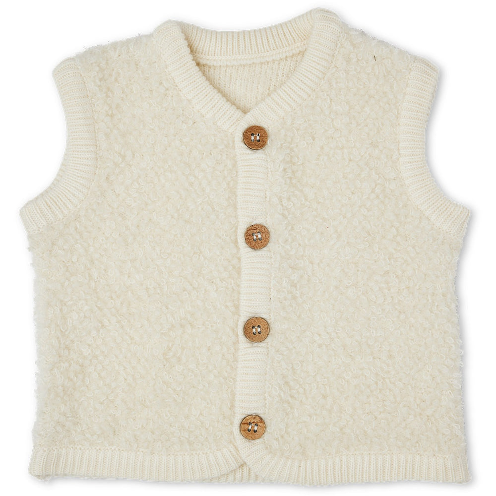 Smallstuff Off White Väst Bouclé Merinoull med knappar