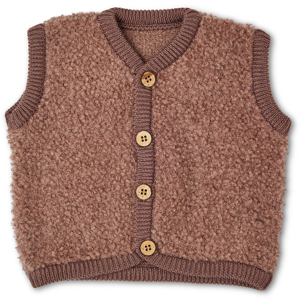 Smallstuff Rose Brown Väst Bouclé Merinoull med knappar
