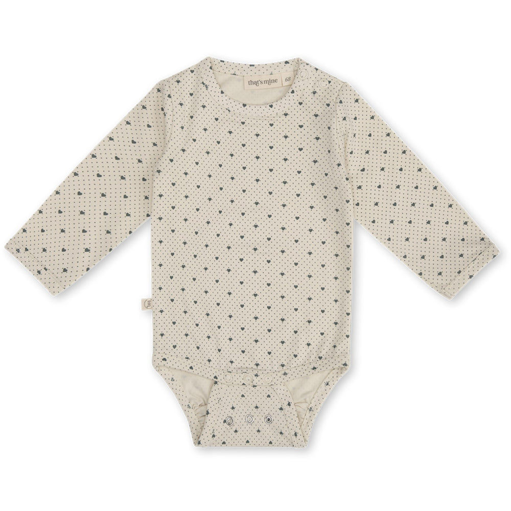 Upptäck den oemotståndliga mjukheten hos That's Mine Lots Of Love Sky Ellis Bodystocking, perfekt för ditt barns känsliga hud. Denna bodystocking är tillverkad av en högkvalitativ blandning av bomull och modal, vilket erbjuder en exceptionell komfort och hållbarhet. Dess mångsidiga design med justerbara längder tack vare de två raderna av metallknappar gör att plagget kan växa med ditt barn. Dessutom charmar den i vackra tryck som adderar stil och glädje till varje outfit. Idealisk för daglig användning och enkel att sköta om. Ge din lilla ett plagg som kombinerar komfort med charm!
