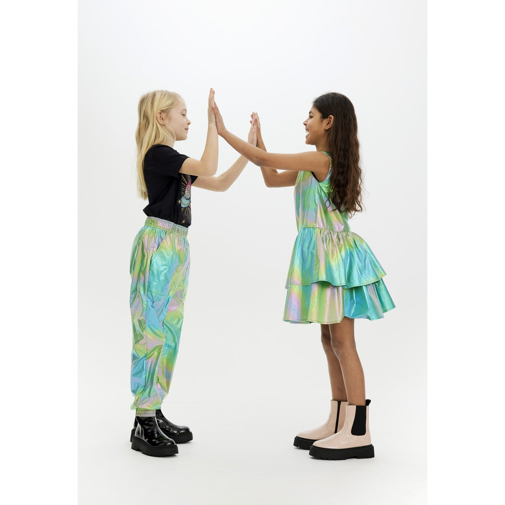 Upptäck de nya mångfärgade Myra-byxorna – det perfekta valet för ditt barns garderob. Dessa byxor är tillverkade av högkvalitativa material som inte bara är hudvänliga utan också hårda nog att stå emot barns lekfulla natur. Med en trendig design och en färgstark palett ger de en fräsch känsla till alla tillfällen.