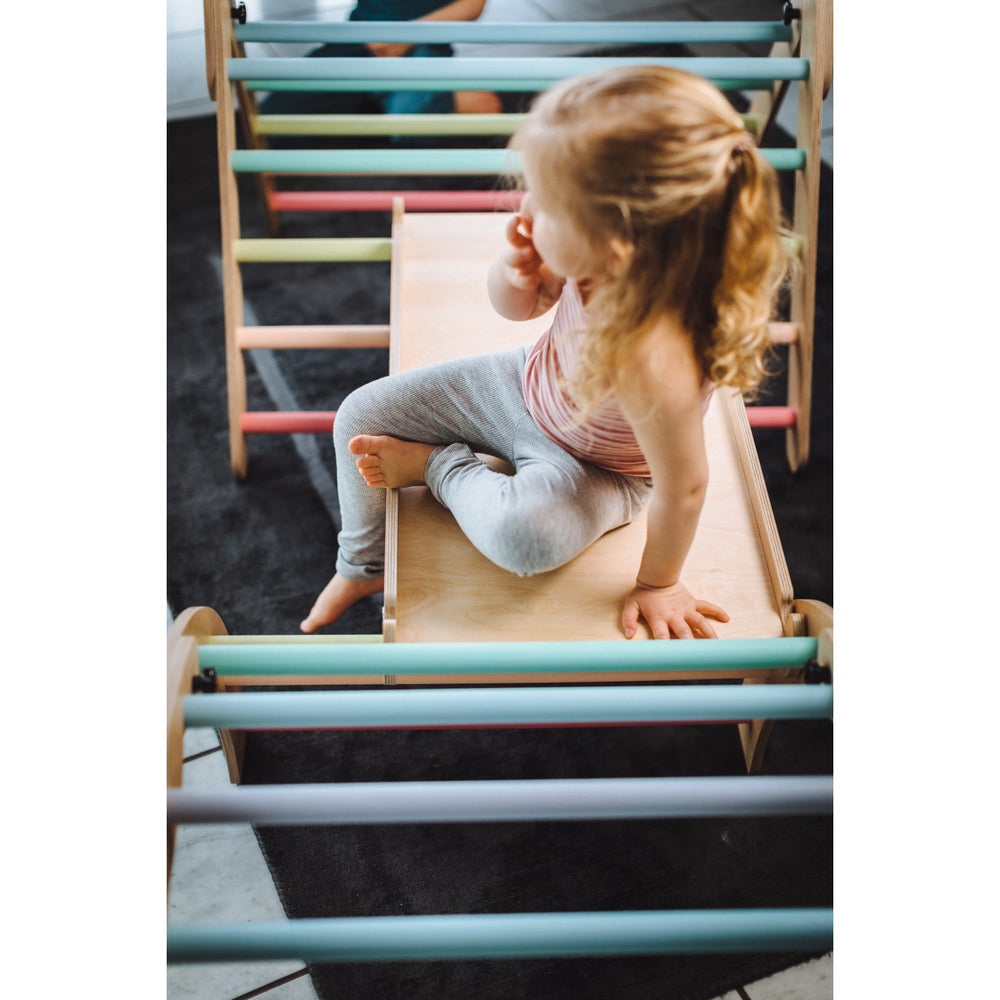 Upplev glädjen och kreativiteten med tiSsi® Multi Pikler Rutsje Klatrestativ, en motorisk leksak designad för att lysa upp varje barns rum med sina subtila pastellfärgade, ofarliga färger. Detta klätterparadis är idealiskt för ditt hem, barnrum, förskola eller sommarstuga, där det säkerställer en lekfull och utvecklande miljö för ditt barn.