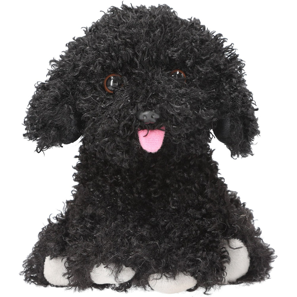 Välkommen till en värld av mjukhet och charm med TOPModel Plyshund! Denna bedårande leksakshund är tillverkad med en lockig och gosig svart päls i polyester, vilket gör den både hållbar och lätt att underhålla. Med sina stora bruna knappögon, svart plastnäsa och en förtjusande rosa tunga, är den här plyschhunden inte bara en gullig kompis utan också perfekt för barnens trygga lek.