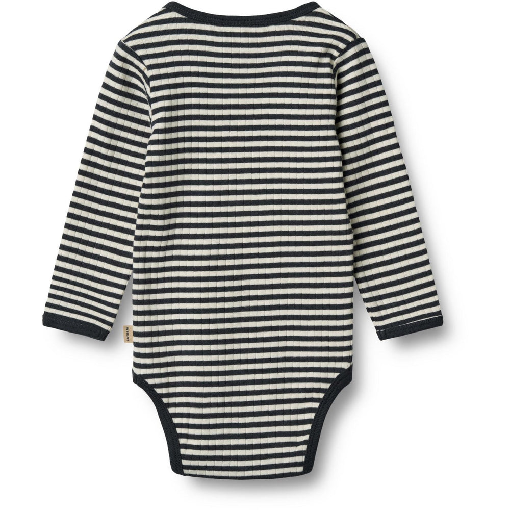 Klä ditt barn i Wheat's Navy Rib Stripe Body L/S Berti, en mysig och snygg basvara för alla barns garderober. Den här mjuka, långärmade bodyn är tillverkad av 100 % ekologisk bomull och har charmiga ränder och praktiska detaljer. Med tryckknappar vid axeln och grenen för enkel på- och blöjbyte är den inte bara bekväm utan också säker och uppfyller OEKO-TEX® Standard 100- och GOTS-certifieringar. Den kontrasterande ribbade halsringningen och fållarna ger en rolig touch till detta viktiga plagg, perfekt för att leka, ta en tupplur eller utforska!