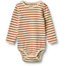 Välkommen till en värld av komfort och stil för de minsta! Introducera Wheat Warm Caramel Stripe Body L/S Berti, en långärmad body som förenar design och funktionalitet. Tillverkad av 100% ekologisk bomull, är denna body inte bara mjuk utan även skonsam mot barnets känsliga hud och miljön. Kroppsnära med en fin randig design i varma karameltoner, utrustad med praktiska tryckknappar både vid axeln och grenen för enkel på- och avklädning.